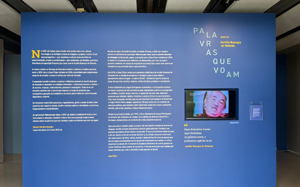 Expografia para itinerância da exposição da Casa Firjan, Palavras que Voam: Acervo Aurélio Buarque de Holanda para o SESI Lab. Brasília, DF, de 2025 à 2026.